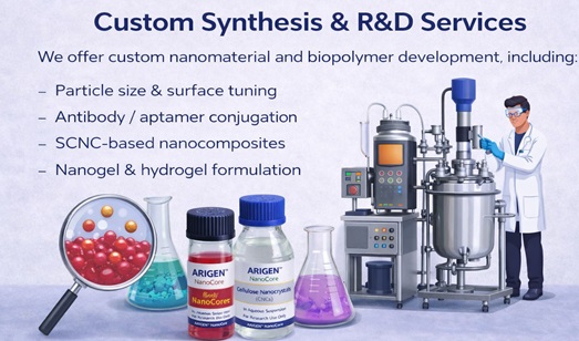 Custom Synthesis & R&D ServicesWe offer custom nanomaterial and biopolymer development, including: